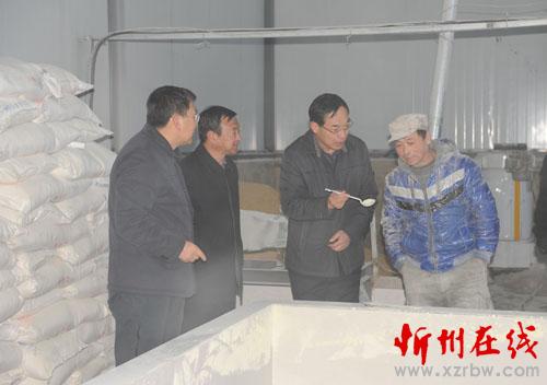 圖為縣領導在眾發(fā)養(yǎng)殖場加工車間調研指導
