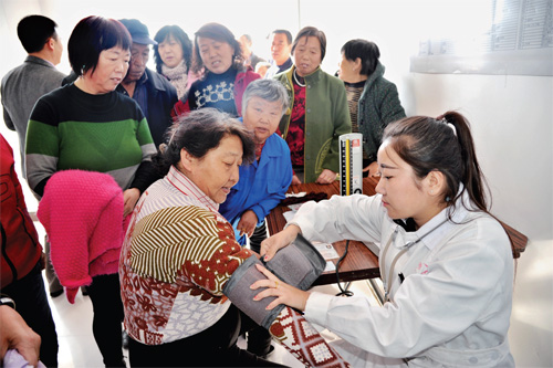 3月7日上午,代縣團(tuán)縣委在上館鎮(zhèn)橙草溝村舉行“傳承雷鋒精神,投身脫貧攻堅(jiān)”志愿服務(wù)活動(dòng)啟動(dòng)儀式,旨在動(dòng)員全縣各級(jí)團(tuán)組織和廣大團(tuán)員青年開展為期一個(gè)月的以“傳承雷鋒精神,投身脫貧攻堅(jiān)”為主題的“送溫暖、獻(xiàn)愛心”、“送金融”、“送科技”、“送文明健康”系列學(xué)雷鋒志愿服務(wù)活動(dòng)。啟動(dòng)儀式現(xiàn)場,共收到全縣捐贈(zèng)的課桌凳1900套、圖書1126冊、文具320件、衣物1063件、書包33個(gè)、體育用品14件,將分發(fā)到貧困地區(qū)農(nóng)村和學(xué)校。圖為志愿者為民群眾義診。(石俊文 攝)