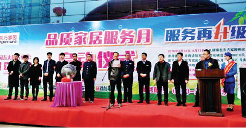 在“3·15”消費者權益日,忻州東方家園建材家具中心推出了“品質家居服務月”活動。期間,東方家園與山西愛潔達貿易公司、忻州市惠民物業(yè)管理公司強強合作,為顧客提供免費上門服務。圖為“品質家居服務月”啟動儀式。(李志強 攝)