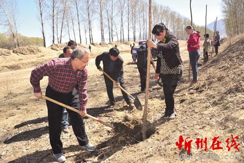 4月8日上午,代縣縣委書記田永清在主持召開了全縣換屆風(fēng)氣專項督導(dǎo)會議之后,立刻趕赴新高鄉(xiāng)河頭村村西的中解河畔,投入到了全體村民義務(wù)植樹的活動中去,既揮鍬挖坑栽樹,又提水澆灌,還不時用鍬把將所栽樹株蹾實,確保樹株成活。