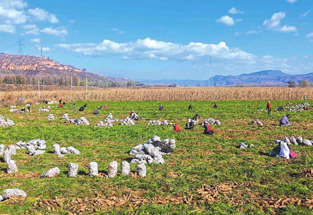 深秋的靜樂縣段家寨村,汾河岸邊的田野里一派熱火朝天的景象。村民們在翠綠的胡蘿卜纓間彎腰采收,一個(gè)個(gè)橙紅飽滿的胡蘿卜從泥土中“探”出頭來;不遠(yuǎn)處的村口,駐村工作隊(duì)員正和村民們一起將打包好的胡蘿卜裝車,一輛輛貨車即將載著這份豐收的喜悅駛向遠(yuǎn)方。今年,段家寨村迎來玉米、土豆、胡蘿卜大豐收,其中胡蘿卜產(chǎn)量突破200萬斤,成為村里增收的“金疙瘩”。