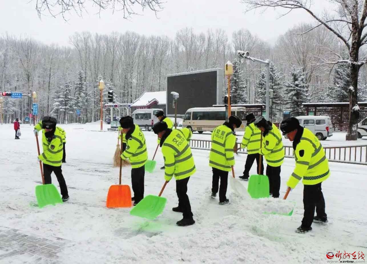11日傍晚,景區(qū)交警大隊(duì)啟動(dòng)惡劣天氣應(yīng)急預(yù)案,堅(jiān)持“警力跟著雪情走、管控跟著風(fēng)險(xiǎn)走”,對(duì)西線(xiàn)、北線(xiàn)等重點(diǎn)路段實(shí)施臨時(shí)交通管控,并將警力精準(zhǔn)投放到主干道及各關(guān)鍵節(jié)點(diǎn)。12日上午,執(zhí)勤民警、輔警頂風(fēng)冒雪,奮戰(zhàn)在清雪除冰第一線(xiàn)。風(fēng)雪中,一抹抹流動(dòng)的“熒光綠”成為最醒目的安全坐標(biāo),通過(guò)現(xiàn)場(chǎng)疏導(dǎo)、隱患排查與實(shí)時(shí)提示,全力筑牢道路交通安全防線(xiàn)。