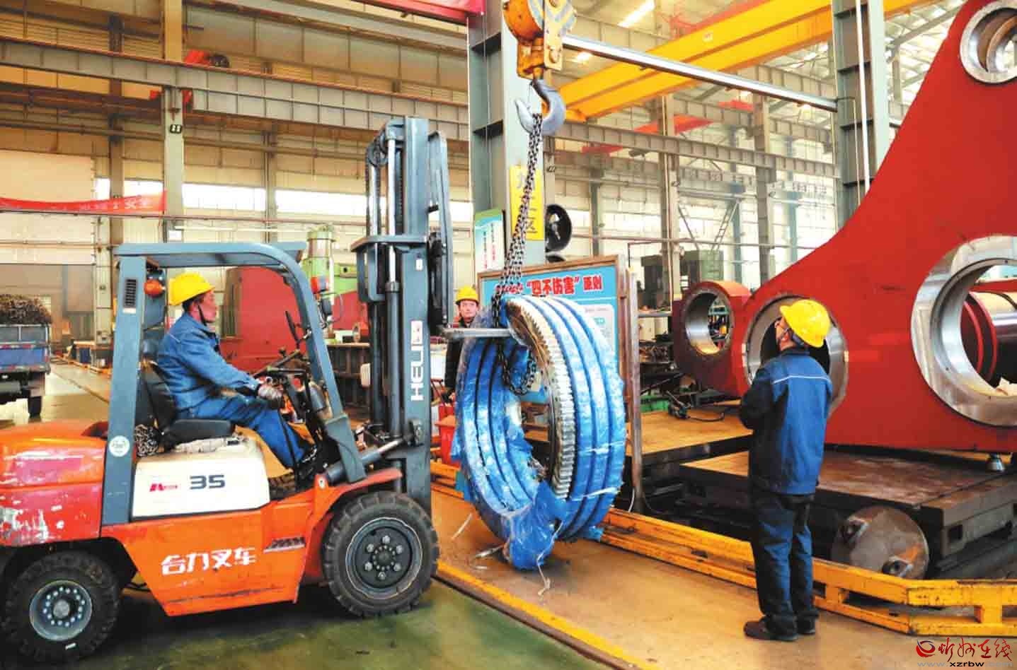 山西晨輝鍛壓設備制造有限公司生產(chǎn)車間,工人搶時間趕進度,全力保障首季訂單任務按時完成。(