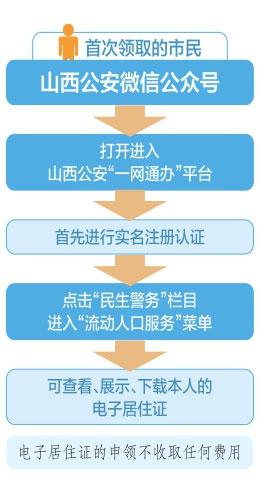 首次領取的市民,只需打開山西公安微信公眾號進入山西公安“一網通辦”平臺,實名注冊認證后,點擊“民生警務”欄目,進入“流動人口服務”菜單,即可查看、展示、下載本人的電子居住證。電子居住證的申領,不收取任何費用。記者看到,“一網通辦”平臺里的電子居住證登載了流動人口的姓名、性別、民族、人像、公民身份號碼、戶籍所在地、現(xiàn)居住地址、有效期限等信息,并新增了二維碼核驗信息。