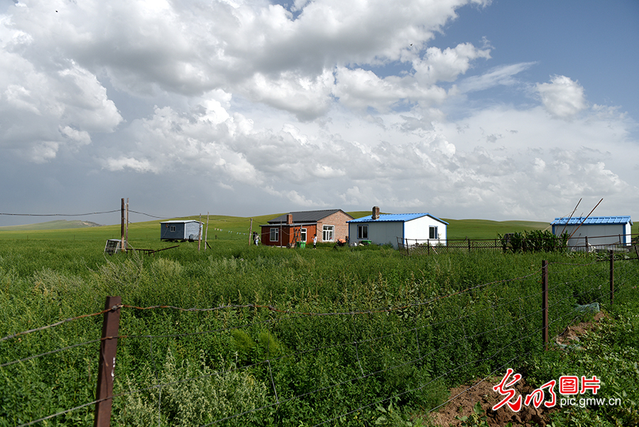 在其日麥拉圖家附近還有三所小房子,這是其日麥拉圖給自己的三個兒子準(zhǔn)備的?!皟鹤觽兌荚谄炖镔I了新房子、新車子,有時候也會帶著兒媳婦、孫子來牧場,和我們一起養(yǎng)牛、養(yǎng)馬?!眻D為2020年8月2日,其日麥拉圖家。(潘迪攝/光明圖片)