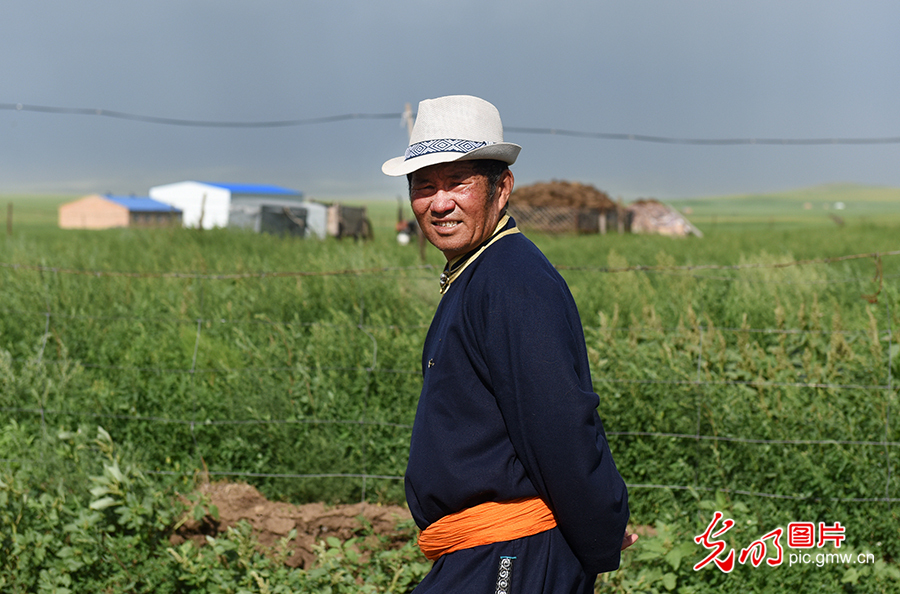 光明網(wǎng)訊(記者 趙艷艷 潘迪 李剛)提起其日麥拉圖,在陳巴爾虎旗的牧民中可謂無人不知、無人不曉。60年前,其日麥拉圖作為一名上海孤兒被內(nèi)蒙古自治區(qū)接到草原撫養(yǎng);60年來,其日麥拉圖加入了黨組織,于1995年擔(dān)任陳巴爾虎旗東烏珠爾蘇木海拉圖嘎查書記,一干就是八年。圖為2020年8月2日,其日麥拉圖在自家牧場。(潘迪攝/光明圖片)