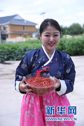 “明花辣白菜”制作者李貞淑是遼寧開源人,2011年嫁到阿榮旗新發(fā)鄉(xiāng)東光村。她的婆婆鄭明花經(jīng)營一家營業(yè)面積1400平方米,員工20人的朝鮮族特色美食餐廳,在致富同時帶動了當?shù)芈糜螛I(yè)發(fā)展。在婆婆鄭明花指導下,李貞淑學習了朝鮮族美食傳統(tǒng)制作工藝,成為阿榮旗非物質文化遺產(chǎn)傳承人。
