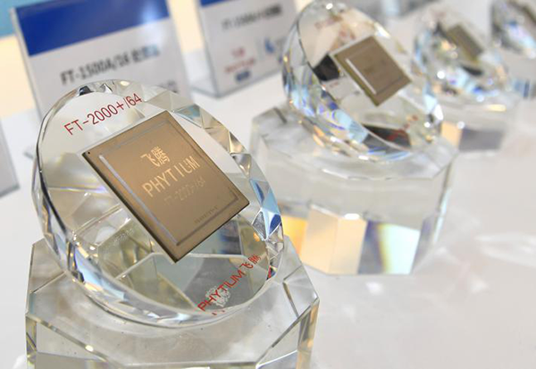 這是在天津?yàn)I海——中關(guān)村科技園協(xié)同創(chuàng)新展示中心展示的飛騰芯片(2019年1月17日攝)。新華社記者 岳月偉攝