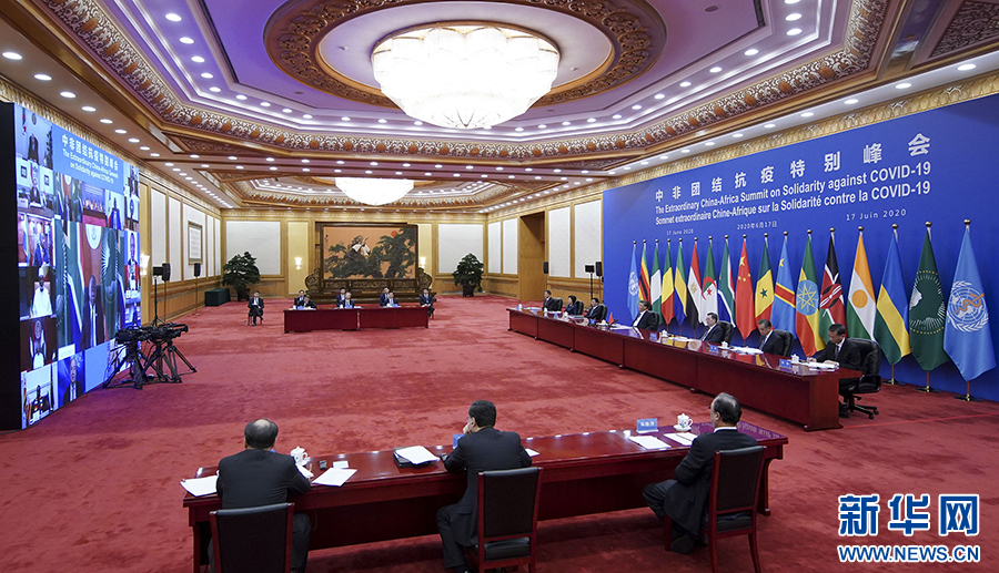 6月17日晚,習近平在北京主持中非團結(jié)抗疫特別峰會并發(fā)表題為《團結(jié)抗疫 共克時艱》的主旨講話。 新華社記者 丁海濤 攝