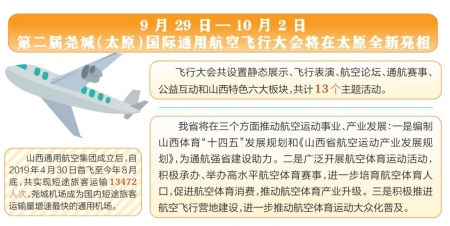 為加大我省通航產(chǎn)業(yè)招商引資力度,促進(jìn)山西通航短途運(yùn)輸、低空旅游、應(yīng)急救援、飛行培訓(xùn)等業(yè)務(wù)飛速發(fā)展,加快航空科技、航空制造、高新技術(shù)研發(fā)等創(chuàng)新企業(yè)落地山西,推動(dòng)全產(chǎn)業(yè)鏈通用航空業(yè)加快發(fā)展,在成功舉辦第一屆的基礎(chǔ)上,9月29日—10月2日,第二屆堯城(太原)國(guó)際通用航空飛行大會(huì)將在太原全新亮相。