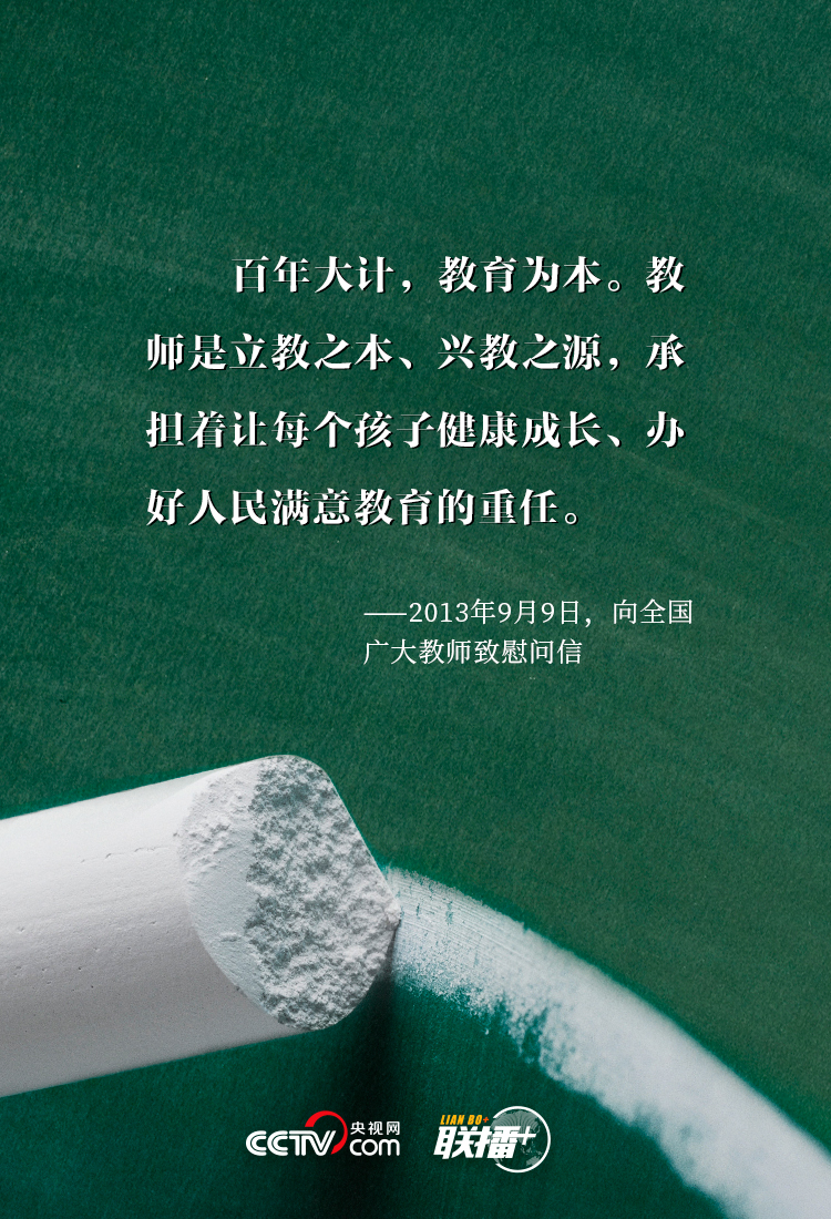 “三寸粉筆,三尺講臺系國運(yùn);一顆丹心,一生秉燭鑄民魂?!绷?xí)近平總書記一直以來高度重視中國教育發(fā)展和教師工作,身體力行倡導(dǎo)尊師重教,深刻指出“好老師”對于個(gè)人、集體乃至民族復(fù)興的重要意義,深情表達(dá)對中華民族“夢之隊(duì)”筑夢人的殷殷厚望。央視網(wǎng)《聯(lián)播+》特梳理,與您共同學(xué)習(xí)。