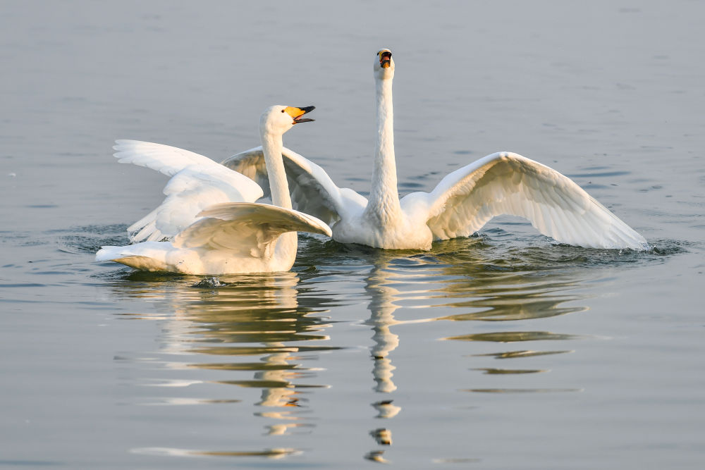 在山西平陸黃河濕地保護(hù)區(qū),一批批來(lái)自西伯利亞的野生大天鵝陸續(xù)飛抵,開始越冬。據(jù)悉,自10月底起,大天鵝已開始分批抵達(dá)黃河濕地,進(jìn)入12月后數(shù)量明顯增加,目前該區(qū)域觀測(cè)到的越冬天鵝已超5000只,到明年1、2月份可達(dá)上萬(wàn)只。它們悠然自得的身影,為黃河岸畔增添了一道靈動(dòng)的風(fēng)景線。