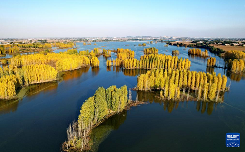 初冬時(shí)節(jié),在河北省邢臺(tái)市隆堯縣亦城村泜河沿岸,樹(shù)葉金黃,與水面、河岸相映襯,勾勒出一幅美麗和諧的自然畫(huà)卷。