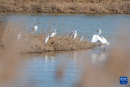 11月13日,在黃河三角洲國家級(jí)自然保護(hù)區(qū),白鷺在濕地休憩。(新華社記者 朱崢 攝)