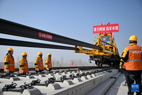 2月1日上午,在河北省保定市順平縣的雄忻高鐵建設(shè)現(xiàn)場(chǎng),中鐵三局集團(tuán)施工人員將首對(duì)500米長(zhǎng)鋼軌平穩(wěn)、精準(zhǔn)地鋪設(shè)在無(wú)砟道床上,標(biāo)志著雄忻高鐵正式進(jìn)入鋪軌施工階段。