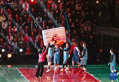 2月3日,人們?cè)?026貴州“村晚”現(xiàn)場(chǎng)展示“姑媽”籃球。(新華社記者 楊文斌 攝)