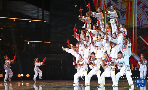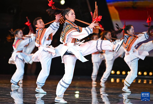 2月3日,孩子們?cè)?026貴州“村晚”現(xiàn)場(chǎng)展示蘆笙舞《滾山珠》。(新華社記者 楊文斌 攝)