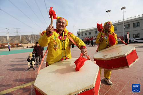 2月5日,甘肅省定西市安定區(qū)巉口鎮(zhèn)的社火隊(duì)隊(duì)員在為春節(jié)表演進(jìn)行排練。(新華社發(fā) 王克賢 攝)