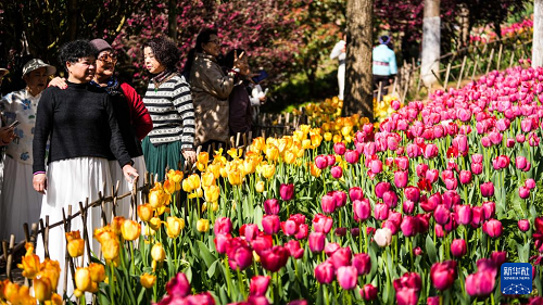 近日,貴州省黔南布依族苗族自治州龍里縣龍架山國家森林公園內(nèi)的數(shù)萬株郁金香競相綻放,吸引各地游客前來游玩賞景。