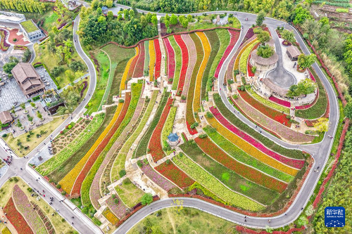 3月18日,游客在重慶市璧山區(qū)古道灣公園游玩(無人機(jī)照片)。(新華社記者 唐奕 攝)