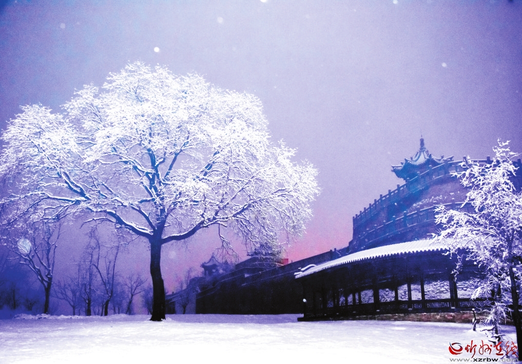 3月19日,我市普降瑞雪,雪后的忻州古城銀裝素裹,古建民居和燈火璀璨的夜景相互輝映,宛如畫(huà)卷。(趙晨善 攝)
