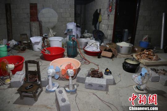 清晨6時,隨著現(xiàn)場指揮長的一聲令下,在山林里潛伏數(shù)小時的抓捕組民警直沖制毒窩點(diǎn),將正在制造毒品的8名犯罪嫌疑人抓獲。