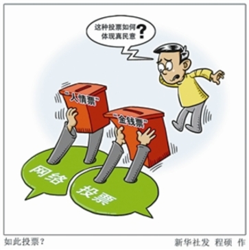 從紅遍大江南北的超女、快男開始,各種評選活動日益增多,最萌寶貝、最美司機、最美景點等等,你方唱罷我登場,好不熱鬧。投票手段也不斷演進,手機短信、網(wǎng)絡(luò)海選、朋友圈投票等,花樣翻新、不一而足。投票方式雖與時俱進,衡量投票結(jié)果的標準卻未變,票數(shù)多少固化為讓各方“信服”的指標,如何獲得票數(shù)則一概不論。