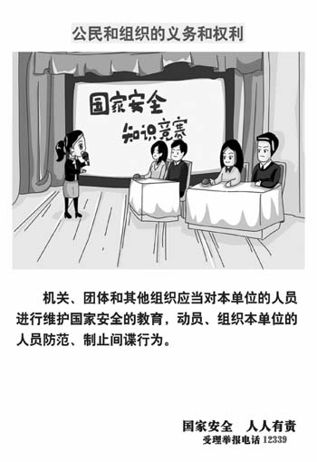 4月15日是《國(guó)家安全法》頒布實(shí)施以來(lái)的第二個(gè)“全民國(guó)家安全教育日”。為進(jìn)一步提高全民國(guó)家安全意識(shí),增強(qiáng)全民國(guó)家安全責(zé)任,努力構(gòu)建反奸防諜人民防線“鋼鐵長(zhǎng)城”,本報(bào)特推出國(guó)家安全教育系列宣傳內(nèi)容,希望廣大人民群眾自覺(jué)踐行法定權(quán)責(zé),不斷提升維護(hù)國(guó)家安全利益的自覺(jué)性,樹立嚴(yán)格保密意識(shí),積極支持和協(xié)助國(guó)家安全機(jī)關(guān)開展工作,為維護(hù)國(guó)家安全和社會(huì)政治穩(wěn)定傾注熱情、貢獻(xiàn)力量。