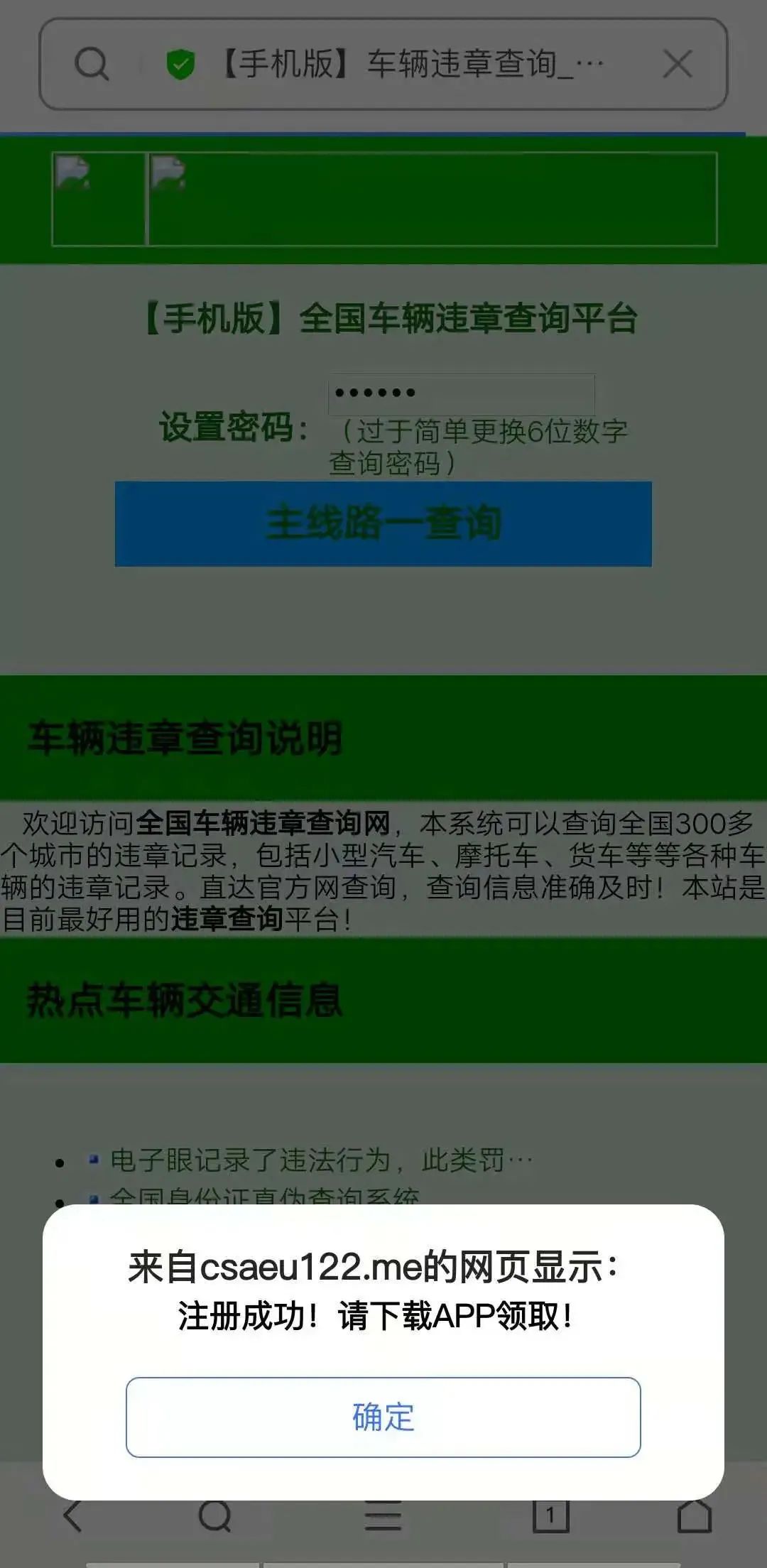 第一步:獲取信息。不法分子通過(guò)不正當(dāng)?shù)氖侄潍@取到受害者及車(chē)輛信息,然后通過(guò)改號(hào)軟件給車(chē)主發(fā)送“違章”的詐騙短信,并在短信中附上虛假網(wǎng)站的網(wǎng)址鏈接。