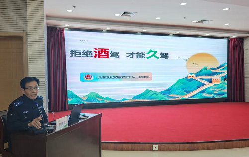 2月17日下午,忻州市公安局交警支隊宣傳科人員走進中國移動通信集團山西有限公司忻州分公司,為企業(yè)管理層和員工代表上了一堂“拒絕酒駕 才能‘久’駕”的交通安全警示教育課。