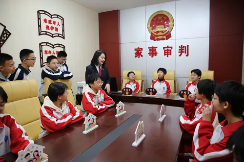 在法院講解員的帶領(lǐng)下,學(xué)生們依次參觀了訴訟服務(wù)中心、家事文化長廊、陽光大廳、科技法庭、院史陳列室等場所,認(rèn)真觀看了中院全面建設(shè)專題片和中院干警自編自導(dǎo)自演的預(yù)防未成年人犯罪題材法治微電影《你依然是天使》,對法院的職能作用、機構(gòu)設(shè)置、歷史文化、信息化建設(shè)有了更為深刻的認(rèn)識。