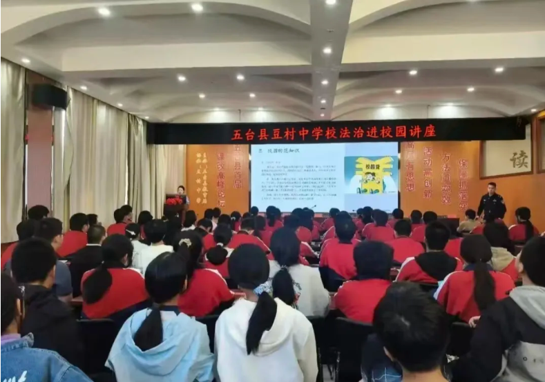 為切實提升青少年法律意識與自我保護能力,重點強化對電信網(wǎng)絡(luò)新型違法犯罪的識別防范能力,守護學(xué)生財產(chǎn)安全,9月24日,五臺縣檢察院聯(lián)合縣公安局、豆村派出所、彩虹禁毒大隊、縣社區(qū)戒毒社區(qū)康復(fù)服務(wù)中心,共同走進豆村中學(xué)開展法治宣講活動,為全校師生送上一份“法治大禮包”。