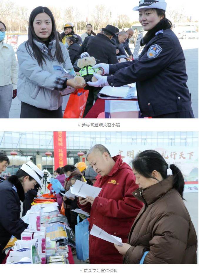 本次活動(dòng)以“文明交通 禮行天下”為主題,由市公安局、市文明辦、市委網(wǎng)信辦、市教育局、市司法局、市交通運(yùn)輸局、市應(yīng)急管理局和團(tuán)市委等八部門聯(lián)合主辦,旨在凝聚共治合力,推動(dòng)形成新時(shí)代文明交通共識(shí),讓文明出行理念深植人心,提升全社會(huì)文明交通水平?;顒?dòng)現(xiàn)場(chǎng),民警和文明交通志愿者通過(guò)文藝演出、發(fā)放宣傳單、簽名承諾、有獎(jiǎng)答題、參觀警用裝備和展板等多種形式,向群眾宣傳交通安全知識(shí)。