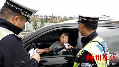 九大隊(duì)民警正在對過往司機(jī)進(jìn)行酒精測試