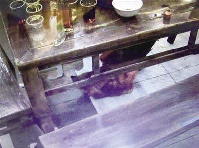 進(jìn)店后,王先生來(lái)到廚房,稱了一只5.7斤的雞。按照王先生的要求,雞稱重后被送到后面現(xiàn)宰??吹絾T工將雞丟進(jìn)了一個(gè)大桶內(nèi)開(kāi)始磨刀,王先生便放心地回到餐桌上與朋友繼續(xù)聊天。