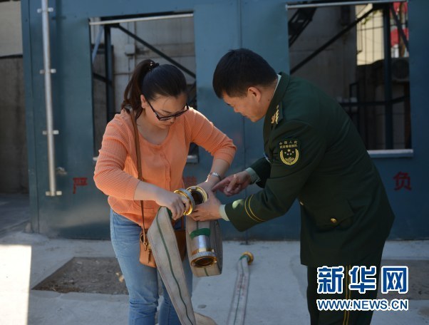 戴亞強帶記者體驗如何對接兩個水袋。(新華網(wǎng) 郭小天/攝) 剛進入中隊,記者第一眼就看到了一個4層訓練塔,戴亞強告訴記者,這個訓練塔主要為了訓練消防戰(zhàn)士負重登樓。因為很多時候有的高層建筑物著火以后,首先要斷電,所以電梯不能用,只能靠徒步。 “對于消防員來說,體能是最基礎(chǔ)的保障。為了縮短救援時間,很多時候都是直接提兩個水袋跑上起火層。消防裝備包括消防員的服裝等,每個消防員整體負重大約是35公斤左右,這對于常人來說是非常困難的?!贝鱽啅娬f。 短跑能力也是消防員的一項必備技能。記者在訓練塔前看到了一條百米跑道。每次救援消防員到場后,都需要形成一個供水干線。必須確保水袋要鋪的很直,從而保證第一時間供水。并且在跑動中要以最快時間就要把兩個水袋接口對接好,這不是那么簡單的。 “在火災(zāi)現(xiàn)場,這對心理挑戰(zhàn)更大。由于年復一年日復一日不斷反復訓練,戰(zhàn)士們胳膊上被打的青一塊紫一塊的?!?戴亞強說。 北京市目前實行了110、119、122三臺聯(lián)動,因此消防隊除了火災(zāi)救援,還有社會救助的職責。火災(zāi)、溺水、跳樓、車禍、人被卡、摘馬蜂窩……與老百姓生命財產(chǎn)安全相關(guān)的事兒,都離他們很近。戴亞強告訴記者,雙榆樹中隊每年出警達1500多起。很多救援中都要應(yīng)用到繩索,因此每個消防員還必須是“攀巖高手”。 供水對消防工作是第一要務(wù),消防中隊里有個專門的供水班,他們每個人每年都要推著自行車把雙榆樹轄區(qū)七個街道辦事處劃片里的每條路都要走一遍,走回來后要畫圖并且要背下來,“就跟人工導航一樣,哪兒走紅綠燈最多,哪兒沒有限高,都要知道的一清二楚。當然除了帶路,最主要的工作是要找水源?!贝鱽啅娬f。 每天都在跟時間賽跑:面對死亡總會自責