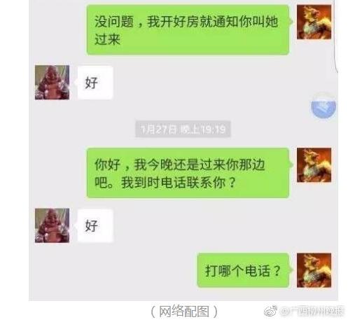 因擔(dān)心“服務(wù)員”的“質(zhì)量”不好,阿強(qiáng)讓“夢醒時分”幫忙挑選一個好一點(diǎn)的“服務(wù)員”。對方 說沒問題,并說將“服務(wù)員”的照片發(fā)給他挑選,覺得哪個合心水就安排哪個過來。想不到對方的服 務(wù)這么好,阿強(qiáng)心里非常興奮。 不過,阿強(qiáng)的興奮很快被氣憤所代替——因?yàn)楫?dāng)“夢醒時分”從微信上發(fā)過來的女子照片,竟然是阿強(qiáng)在外地打工的老婆!