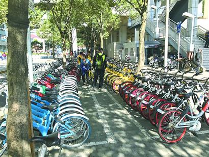 半年前這里不是這樣的?!案骷夜蚕韱诬嚻髽I(yè)過(guò)度投放的共享單車,把人行道堵得水泄不通。很多市民用完車就在路邊隨處放,我們只能一輛一輛搬走。”陳中回憶,那時(shí),為了保障正常的交通秩序,交警部門只得增派警力駐守管理。盡管牽扯了民警大量精力,但由于共享單車體量龐大,管理效果并不理想。