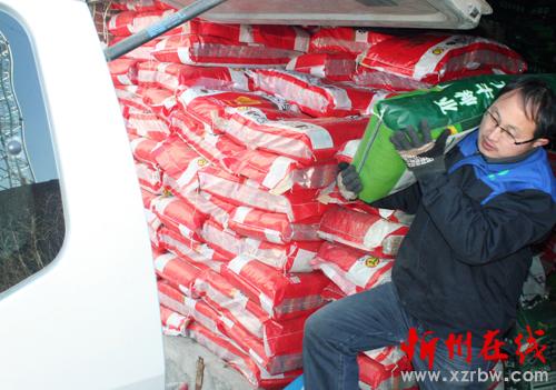 2月21日, 原平市大豐種業(yè)的人員,正在為北郭下村的農(nóng)民拉用種子送貨上門服務,受到農(nóng)民歡迎。目前該市 農(nóng)民們已經(jīng)開始購買各種、種子化肥等,為今年春耕備耕生產(chǎn)提前做好準備 ,打下堅實基礎(chǔ)。(趙月仁 攝)
