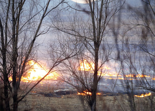 昨日(2月25日)傍晚,在忻阜高速與大運高速互通立交橋西南方向的茫茫田野里,只見煙霧彌漫,火光沖天。火海一眼望不到邊際,升騰、翻滾的濃煙,在空中彌漫,嚴重影響司機視線,過往車輛無不小心翼翼。