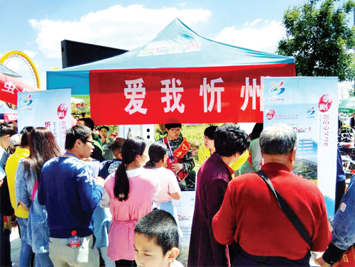 5 月15 日,忻州青年志愿者服務(wù)協(xié)會(huì)、愛(ài)心公益聯(lián)盟、忻州師院志工部的愛(ài)心人士,人員一起來(lái)到云中河景區(qū)晉忻夢(mèng)幻樂(lè)園門前,開(kāi)展“愛(ài)我忻州、為家鄉(xiāng)投票”活動(dòng),為我市“申旅”助力?;顒?dòng)現(xiàn)場(chǎng)吸引了眾多游客,大家紛紛拿出手機(jī),為美麗的家鄉(xiāng)投票。圖為投票活動(dòng)現(xiàn)場(chǎng)。(張志遠(yuǎn) 攝)