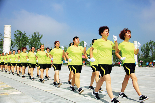 7 月17 日,“康樂健步走”團隊在忻州城區(qū)云中河景區(qū)開展“我運動,我健走,我健康,我快樂,我幸?!鼻私〔阶呋顒?,慶祝該團隊成立兩周年?!翱禈方〔阶摺眻F隊以“健康快樂”為口號,目前在全市已發(fā)展到50 余支健走隊伍。(吉建平 攝)