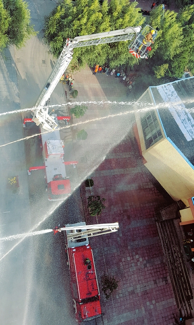 9月26日,在忻州師范學(xué)院內(nèi),當(dāng)?shù)叵啦块T舉行了國(guó)慶節(jié)前應(yīng)急疏散演練,其中包括滅火器材使用、火場(chǎng)逃生自救等演練項(xiàng)目。(樊晶璟 攝)