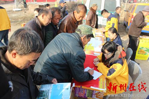 11月29日,原平市聚農(nóng)豐肥料合作社在農(nóng)貿(mào)市場擺攤推銷肥料。入冬以來,該合作社充分利用鄉(xiāng)下農(nóng)貿(mào)市場趕集的機(jī)會,帶著各種肥料的宣傳資料,現(xiàn)場與農(nóng)民對接簽訂免費(fèi)送肥合同,受到農(nóng)民歡迎。(曹申義 攝)