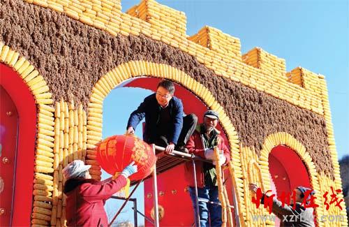 新年前夕,定襄縣河邊鎮(zhèn)馬家窯村第一書(shū)記牛世偉(上)正與村民搭建藝術(shù)造型“共同致富”門(mén)。馬家窯村開(kāi)展鄉(xiāng)村紅色旅游,全村今年新增收入10萬(wàn)余元。(張晉蘭 攝)