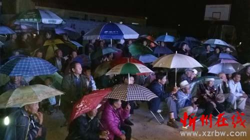 演出期間,記者觀察到,每場(chǎng)演出前,村民們都早早地搬凳子帶椅子到戲院等著看戲,十里八鄉(xiāng)的群眾也接踵而至。特別是最后一場(chǎng)戲晚上八點(diǎn)開演,雨提前半小時(shí)下起來都擋不住村民們趕來看戲的腳步,戲院里站的、坐的、蹲的……四處都是人。