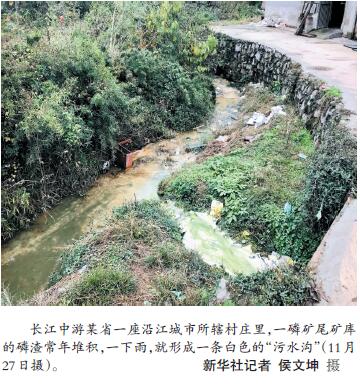 而在離城區(qū)稍遠(yuǎn)的農(nóng)村,部分不法村鎮(zhèn)小作坊等污水違規(guī)排放時有發(fā)生。檢查組發(fā)現(xiàn),長江中游某省一座沿江城市所轄村莊里,一磷礦尾礦庫的磷渣常年堆積,一下雨,就形成一條白色的“污水溝”。檢查組在華北某特大城市北部遠(yuǎn)郊一村中實(shí)地檢查時發(fā)現(xiàn),該村“黑洗衣作坊”違規(guī)偷排污水,污染環(huán)境。