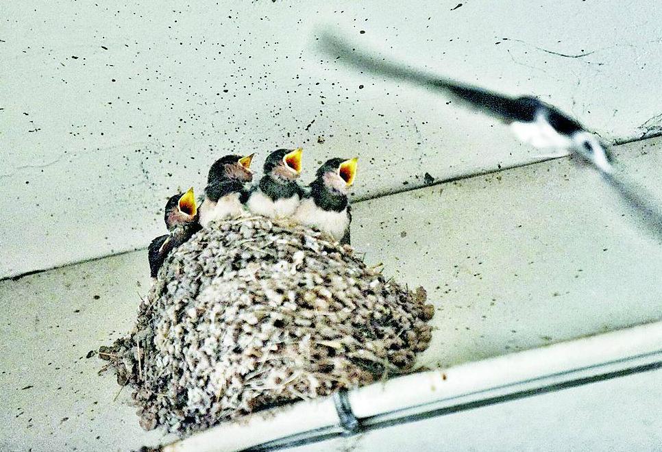 燕子父母“落戶(hù)”的地方是千峰北路集祥美地西區(qū)2號(hào)樓新丁”A座2單元門(mén)上方。3年前,在該單元大門(mén)斜上方,燕子父母搭了個(gè)窩,一直與這里的居民和諧相處。對(duì)兩只燕子的飛出飛進(jìn),居民們?cè)缫阉究找?jiàn)慣。燕子是候鳥(niǎo),冬去春來(lái),3年來(lái),居民們誰(shuí)也沒(méi)動(dòng)過(guò)腦筋,拆了它們的家。用李女士的話來(lái)說(shuō),燕子是益鳥(niǎo),夏天能捕食蚊子和蒼蠅等害蟲(chóng)。這樣的鄰居與我們?yōu)榘?,何?lè)不為!為了不讓燕子的排泄物影響到單元門(mén)前地面的衛(wèi)生,小區(qū)保潔員這么多年一直自覺(jué)自愿地承擔(dān)著清掃任務(wù)。