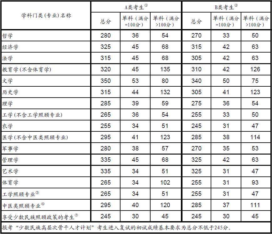 2016年全國碩士研究生招生考試考生進(jìn)入復(fù)試的初試成績(jī)基本要求(專業(yè)學(xué)位類)