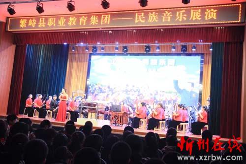 本報訊11月23日下午,繁峙縣職業(yè)教育集團民樂團在忻一中體育館舉行民樂展演。國家一級作曲家、指揮,山西省歌舞劇院著名指揮劉建斌進行了音樂指揮。